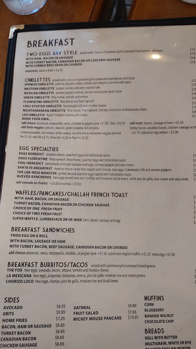 Start your day with familiar morning favorites like eggs served overeasy with bacon, Challah French toast accompanied by sausage, or the Spanish omelette. For something refreshing, freshly squeezed orange juice or a cold brew coffee complement the breakfast offerings well. The menu’s versatile nature means there’s a thoughtful choice for early risers and casual brunch visitors alike.